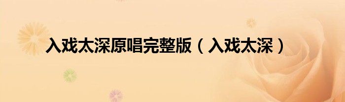 以上就是【入戏太深原唱完整版,入戏太深】相关内容。