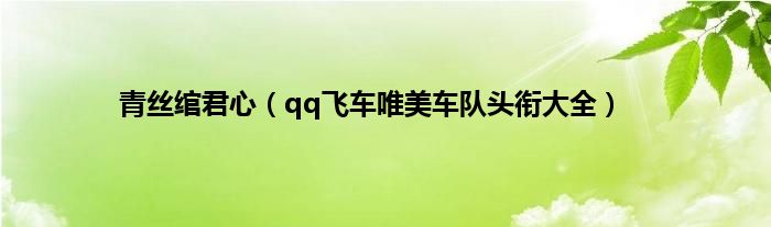 大家好,综合小编来为大家讲解下。青丝绾君心,qq飞车唯美车队头衔大全这个很多人还不知道,现在让我们一起来看看吧!