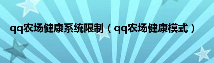 大家好,小问来为大家解答以上问题。qq农场健康系统限制,qq农场健康模式这个很多人还不知道,现在让我们一起来看看吧!