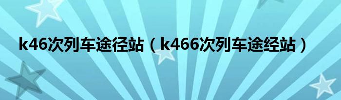 大家好,小问来为大家解答以上问题。k46次列车途径站,k466次列车途经站这个很多人还不知道,现在让我们一起来看看吧!