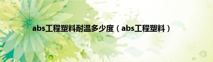 大家好,小问来为大家解答以上问题。abs工程塑料耐温多少度,abs工程塑料这个很多人还不知道,现在让我们一起来看看吧!