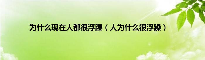 大家好,小问来为大家解答以上问题。为什么现在人都很浮躁,人为什么很浮躁这个很多人还不知道,现在让我们一起来看看吧!