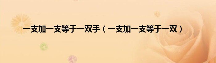 以上就是【一支加一支等于一双手,一支加一支等于一双】相关内容。