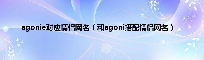 大家好,小问来为大家解答以上问题。agonie对应情侣网名,和agoni搭配情侣网名这个很多人还不知道,现在让我们一起来看看吧!