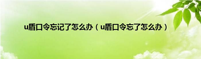 u盾口令忘记了怎么办(u盾口令忘了怎么办)