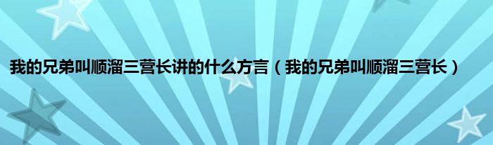 以上就是【我的兄弟叫顺溜三营长讲的什么方言,我的兄弟叫顺溜三营长】相关内容。