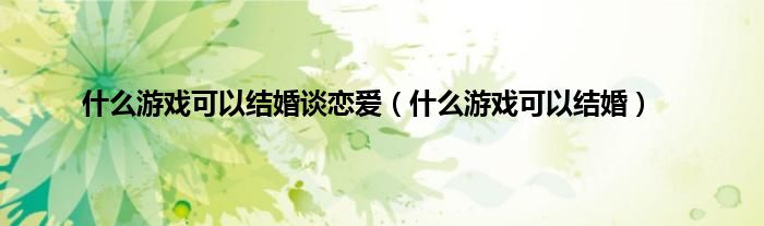 以上就是【什么游戏可以结婚谈恋爱,什么游戏可以结婚】相关内容。