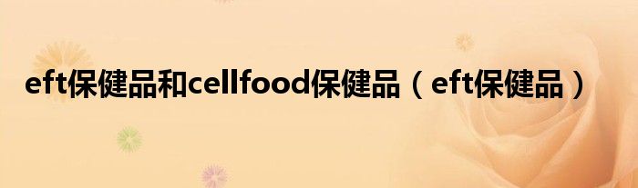 大家好,小问来为大家解答以上问题。eft保健品和cellfood保健品,eft保健品这个很多人还不知道,现在让我们一起来看看吧!