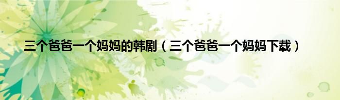 以上就是【三个爸爸一个妈妈的韩剧,三个爸爸一个妈妈下载】相关内容。