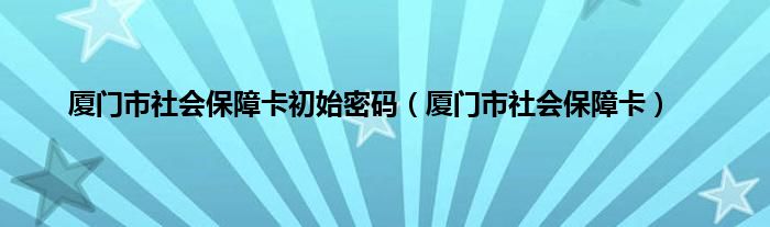 以上就是【厦门市社会保障卡初始密码,厦门市社会保障卡】相关内容。