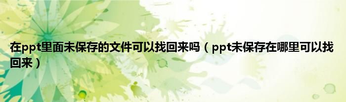 以上就是【在ppt里面未保存的文件可以找回来吗,ppt未保存在哪里可以找回来】相关内容。