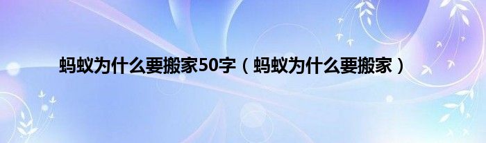 大家好,小问来为大家解答以上问题。蚂蚁为什么要搬家50字,蚂蚁为什么要搬家这个很多人还不知道,现在让我们一起来看看吧!