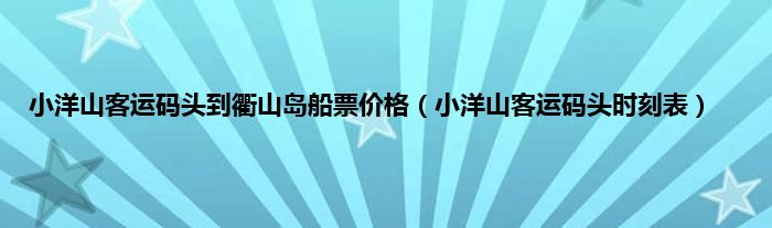 以上就是【小洋山客运码头到衢山岛船票价格,小洋山客运码头时刻表】相关内容。