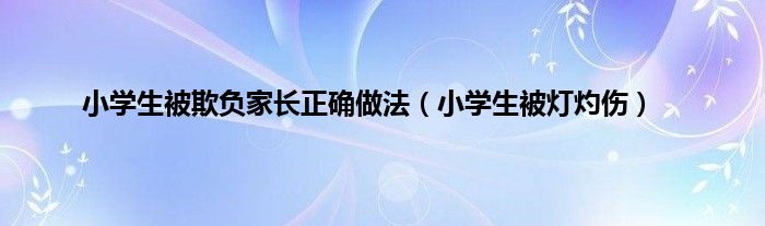 大家好,小问来为大家解答以上问题。小学生被欺负家长正确做法,小学生被灯灼伤这个很多人还不知道,现在让我们一起来看看吧!