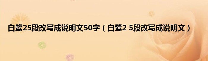 以上就是【白鹭25段改写成说明文50字,白鹭2 5段改写成说明文】相关内容。