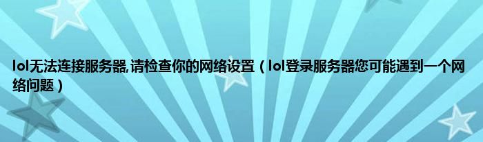 大家好,小问来为大家解答以上问题。lol无法连接服务器,请检查你的网络设置,lol登录服务器您可能遇到一个网络问题这个很多人还不知道,现在让我们一起来看看吧!