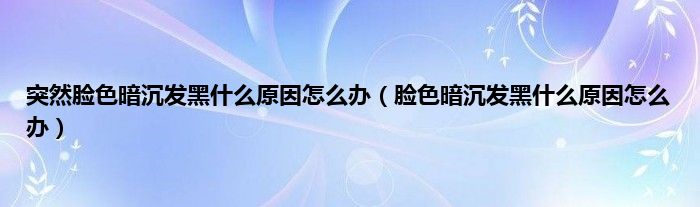 本文,突然脸色暗沉发黑什么原因怎么办,脸色暗沉发黑什么原因怎么办到此就分享完毕,希望对大家有所帮助。