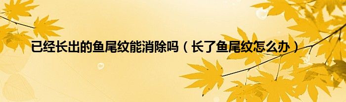 本文,已经长出的鱼尾纹能消除吗,长了鱼尾纹怎么办到此就分享完毕,希望对大家有所帮助。