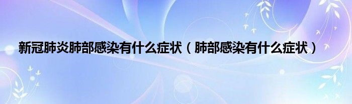 大家好,新冠肺炎肺部感染有什么症状,肺部感染有什么症状很多人还不知道,现在让我们一起来看看吧!