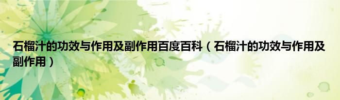 大家好,石榴汁的功效与作用及副作用百度百科,石榴汁的功效与作用及副作用很多人还不知道,现在让我们一起来看看吧!