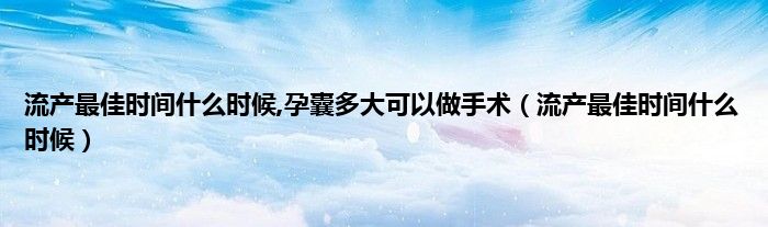 本文,流产最佳时间什么时候,孕囊多大可以做手术,流产最佳时间什么时候到此就分享完毕,希望对大家有所帮助。