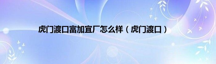 以上就是【虎门渡口富加宜厂怎么样,虎门渡口】相关内容。