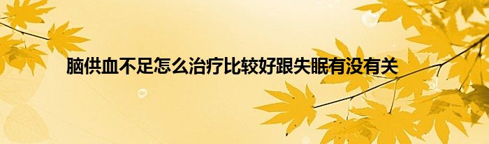 本文,脑供血不足怎么治疗比较好跟失眠有没有关到此就分享完毕,希望对大家有所帮助。