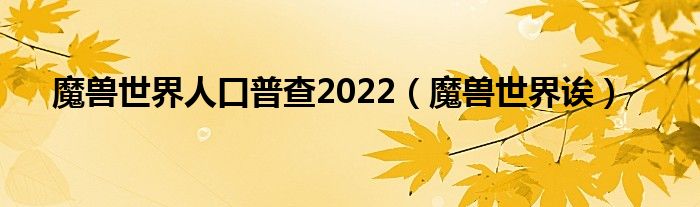 以上就是【魔兽世界人口普查2022,魔兽世界诶】相关内容。