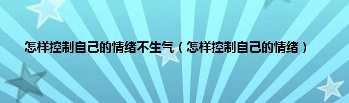 以上就是【怎样控制自己的情绪不生气,怎样控制自己的情绪】相关内容。