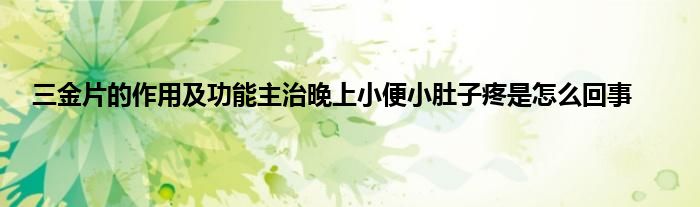 大家好,三金片的作用及功能主治晚上小便小肚子疼是怎么回事很多人还不知道,现在让我们一起来看看吧!