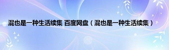 大家好,小问来为大家解答以上问题。混也是一种生活续集 百度网盘,混也是一种生活续集这个很多人还不知道,现在让我们一起来看看吧!