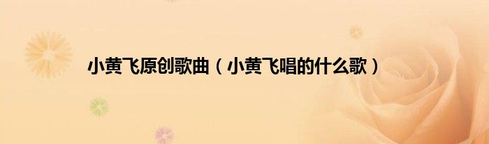 以上就是【小黄飞原创歌曲,小黄飞唱的什么歌】相关内容。