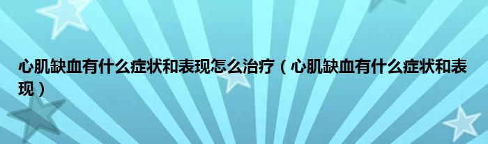 本文,心肌缺血有什么症状和表现怎么治疗,心肌缺血有什么症状和表现到此就分享完毕,希望对大家有所帮助。