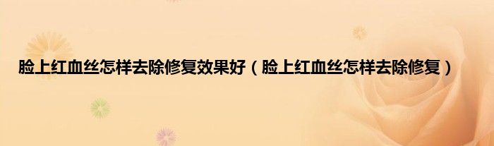 本文,脸上红血丝怎样去除修复效果好,脸上红血丝怎样去除修复到此就分享完毕,希望对大家有所帮助。