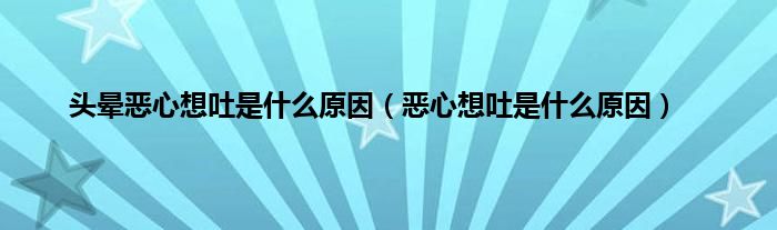 本文,头晕恶心想吐是什么原因,恶心想吐是什么原因到此就分享完毕,希望对大家有所帮助。