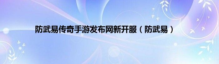 大家好,小问来为大家解答以上问题。防武易传奇手游发布网新开服,防武易这个很多人还不知道,现在让我们一起来看看吧!