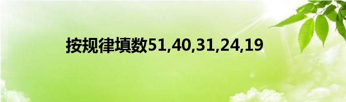 大家好,小问来为大家解答以上问题。按规律填数51,40,31,24,19这个很多人还不知道,现在让我们一起来看看吧!