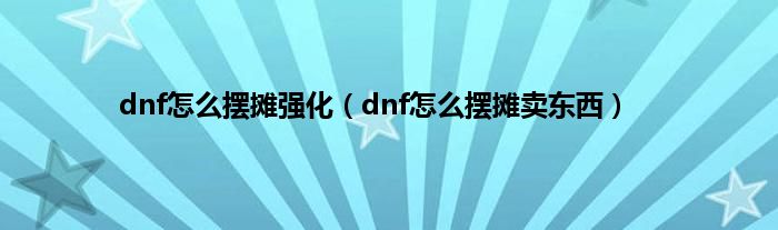 dnf怎么摆摊强化(dnf怎么摆摊卖东西)