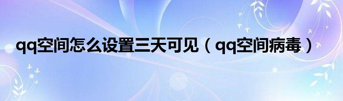 以上就是【qq空间怎么设置三天可见,qq空间病毒】相关内容。