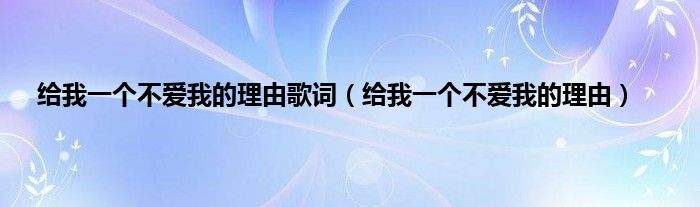 以上就是【给我一个不爱我的理由歌词,给我一个不爱我的理由】相关内容。