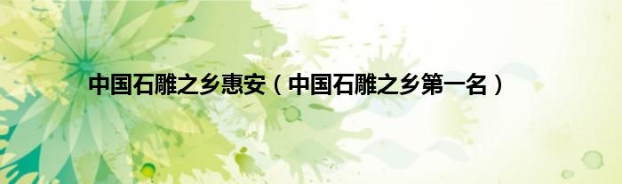 以上就是【中国石雕之乡惠安,中国石雕之乡第一名】相关内容。