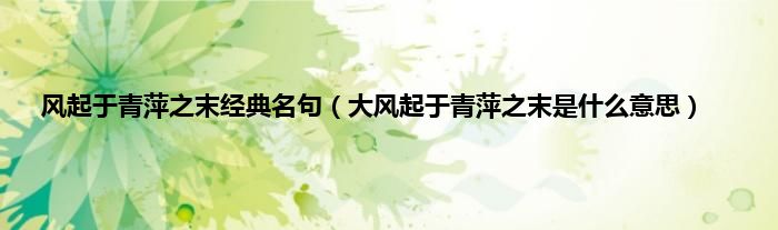 本文,风起于青萍之末经典名句,大风起于青萍之末是什么意思到此就分享完毕,希望对大家有所帮助。