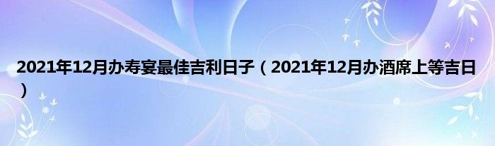 大家好,2021年12月办寿宴最佳吉利日子,2021年12月办酒席上等吉日很多人还不知道,现在让我们一起来看看吧!