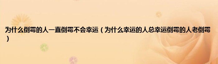 本文,为什么倒霉的人一直倒霉不会幸运,为什么幸运的人总幸运倒霉的人老倒霉到此就分享完毕,希望对大家有所帮助。