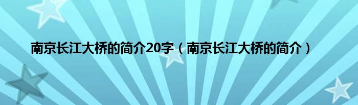 本文,南京长江大桥的简介20字,南京长江大桥的简介到此就分享完毕,希望对大家有所帮助。
