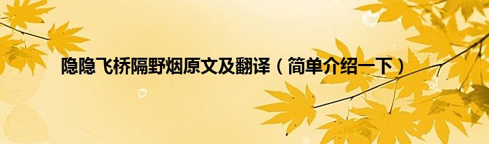大家好,隐隐飞桥隔野烟原文及翻译,简单介绍一下很多人还不知道,现在让我们一起来看看吧!