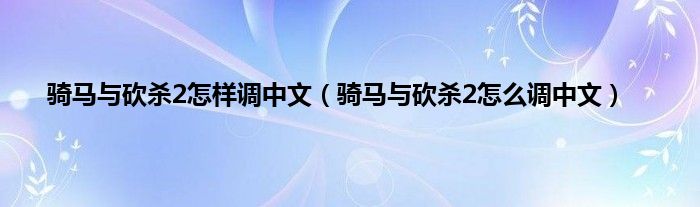 本文,骑马与砍杀2怎样调中文,骑马与砍杀2怎么调中文到此就分享完毕,希望对大家有所帮助。