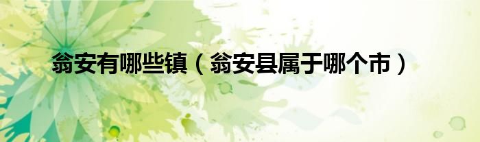 本文,翁安有哪些镇,翁安县属于哪个市到此就分享完毕,希望对大家有所帮助。