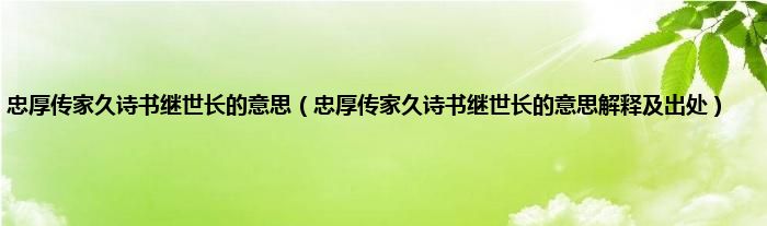 本文,忠厚传家久诗书继世长的意思,忠厚传家久诗书继世长的意思解释及出处到此就分享完毕,希望对大家有所帮助。
