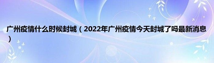本文,广州疫情什么时候封城,2022年广州疫情今天封城了吗最新消息到此就分享完毕,希望对大家有所帮助。